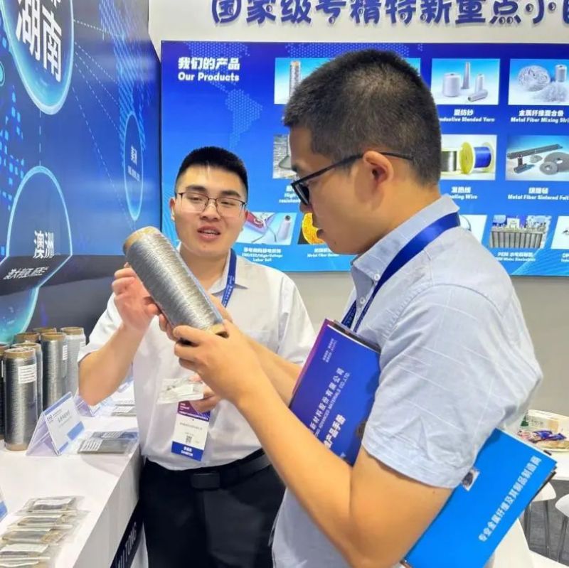 惠同新材料(E3E49)帶來了全系金屬纖維及制品一系列解決方案。展會現場精彩紛呈,熱鬧非凡,展現出了金屬纖維及制品行業的蓬勃面貌?;萃虏耐ㄟ^產品展示、互動等豐富多彩的展現形式吸引參展觀眾留駐展臺,進行深度洽談,共謀金屬纖維行業發展新機遇。